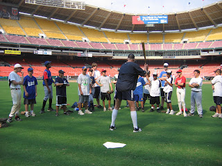Many of the kids today were participating under the umbrella Group "Play Ball DC"--A Non Profit Group that works with youth baseball organizations in the District. Its Director, Michael Williams telling me: "These events are invaluable. The Clinics give the youngsters, not only the opportunity to learn some new skills--but also see a potential future--playing on the fields--not on the streets."
