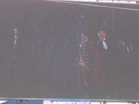 Our only critique about the entire performance was watching the production at times on the HDTV Screen against a very bright, sunlit sky. "A Masked Ball" is a dark tragedy and the Kennedy Center Opera House stage was faintly lit for certain scenes to set the mood. That design for the in-house opera audience did not translate well to the Big Screen audience at the ballpark during the day. A times, the performers seemed to disappear against total blackness on the big television screen.