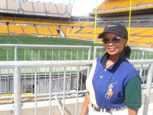 Of course, that Vintage Road Show was not what had attracted us to the Heinz Field area in the first place. The annual RibFest was the drawing card. BBQ vendors from around these United States competing for the prize of best ribs. The place was packed, but the biggest surprise for us was the free self-guided tours available of The Pittsburgh Steelers Home Field. Come on in, take your shoes off, have a good time exploring.